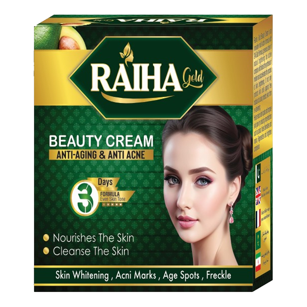 Suitable for all skin types, Raiha Gold Beauty Cream is your daily partner for glowing, confident, and youthful skin.